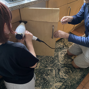 Armed with a design and our project plan, we set to work on a wet Saturday at the start of the week off, figuring we'd be done by mid week. Hairdryer and an artist’s palette knife, or as it jokingly became known, the ‘thermo-plastic scraping tool’, at the ready…